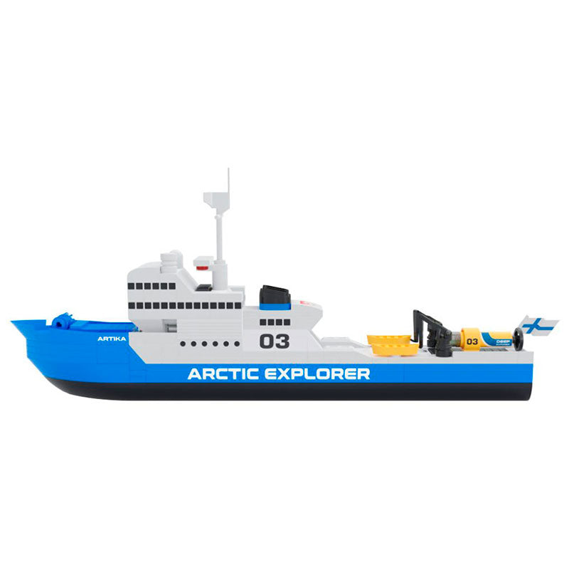Este set incluye un mini submarino de exploración. ¿Estás listo para desafiar las profundidades de tu imaginación? El Buque Artika te invita a una aventura científica sin igual, sumergiéndote en un mar de conocimiento y diversión.