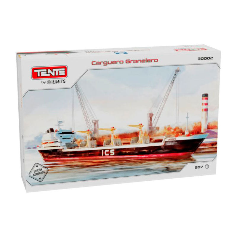 Basado en los grandes barcos que transportan ingentes cargas secas a granel por todo el océano os traemos este modelo de la serie MAR de Tente by iUnits Carguero Granelero 30002 que intenta reproducir con exactitud sus múltiples características a una escala 1:600. Cuenta con un total de 397 piezas que hacen de su montaje de dificultad fácil un genial pasatiempo para compartir o disfrutar en tus momentos de tranquilidad. Sus dimensiones son 58 x 8 x 13,5 cm una vez construido. Incluye caja de 32 x 22 x 7 cm con ilustración del modelo, certificado de autenticidad e instrucciones de montaje junto con las pegatinas. ¿Alguna vez imaginaste como se mueven las mercancías entre continentes?, ¡el hermano mayor de nuestro modelo es el responsable!