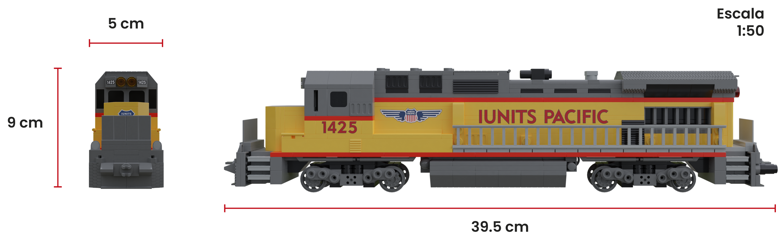Koani Juguetería junto a TENTE iUnits te presentamos el primer modelo de una nueva serie llamada “RAIL”, una serie que abarcará el mundo ferroviario como nunca lo habías visto. Y, para empezar, nada mejor que una de las grandes locomotoras de transporte de mercancías de largo recorrido del continente americano, la espectacular GE B40-8. Con este modelo, disfrutarás de una experiencia muy gratificante, con un resultado y apariencia muy real, con unas medidas de 39,49 x 5,80 x 8,80 cm y a una escala 1:50. Este set cuenta además con una peana que reproduce una vía ferroviaria, un conjunto que será una atracción para tu vitrina y para todos los entusiastas del ferrocarril.