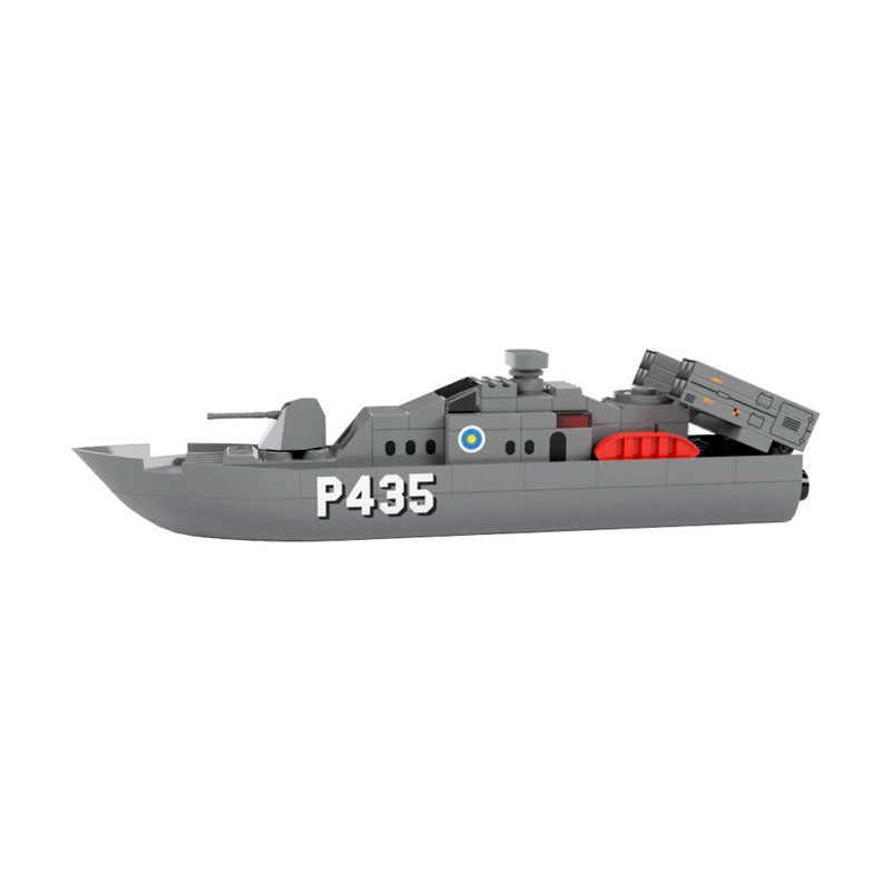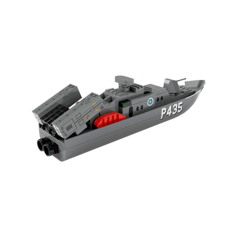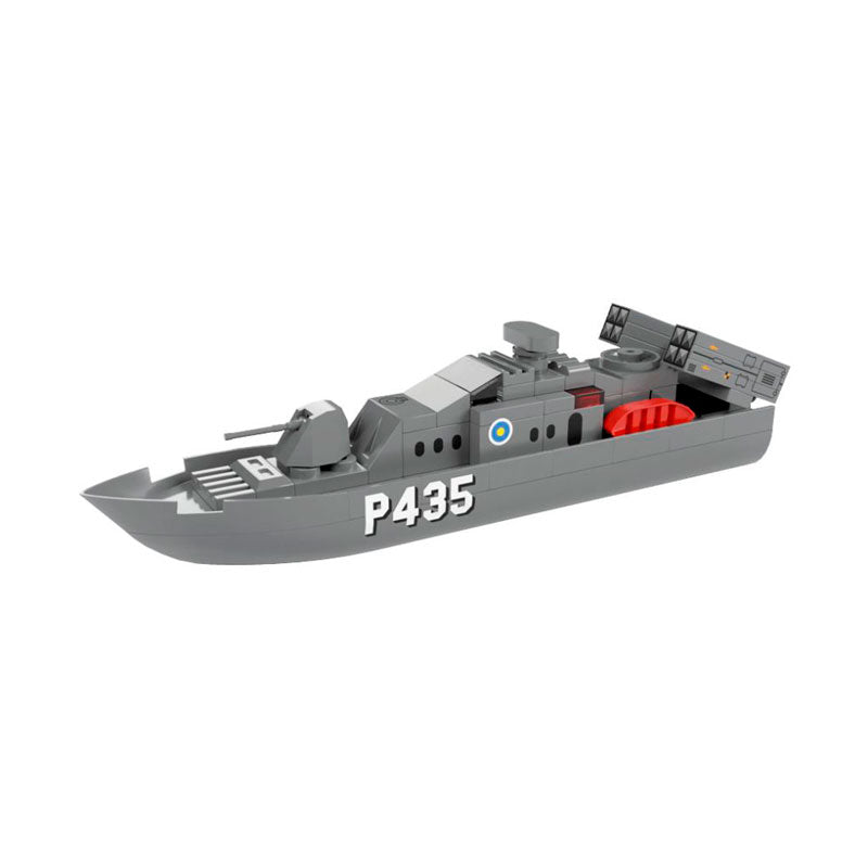 Nos alegra que hayas venido a conocer la historia de la P435, una patrullera militar que hemos tenido el honor de comandar en varias misiones. Esta embarcación del modelo Patrullera P435 de Tente by iUnits es una de las más avanzadas en su categoría y ha sido diseñada para proteger las aguas de cualquier amenaza. La P435 es un barco impresionante que ha sido construido con los mejores materiales y equipado con las armas más avanzadas. Su casco está pintado en un camuflaje militar y su cubierta está equipada con todo lo necesario para enfrentar situaciones de combate. Con el set de construcción de Tente by iUnits, puedes construir tu propia P435 y sentir la emoción de estar en un barco militar de alta tecnología, sus dimensiones son de 18 x 3 x 4.9 cm a una escala de 1:145. Este set incluye caja de 22 x 16 x 7 cm con ilustración del modelo, certificado de autenticidad e instrucciones de montaje junto con las pegatinas para ajustar los detalles que hacen que la construcción sea fácil y emocionante. Si eres un apasionado de la construcción y la aventura, no esperes más y hazte con tu propia P435 hoy mismo. ¡El país te necesita!