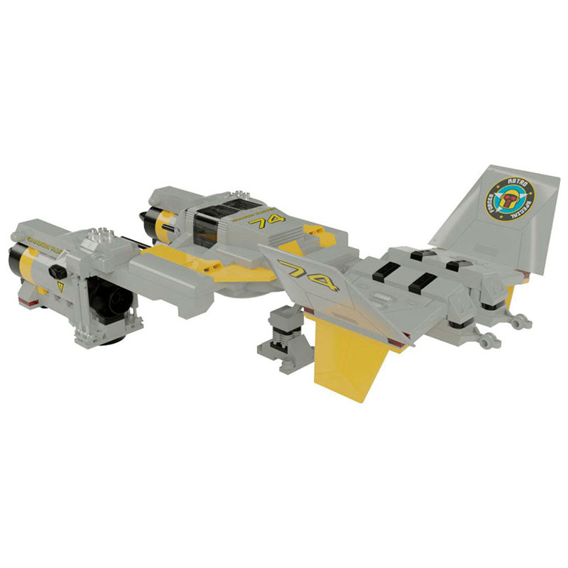 Cuenta con 2 hiperimpulsores con los que da alcance rápido a casi cualquier nave conocida y tecnología antigravitatoria, por lo que puede despegar y aterrizar, prácticamente en cualquier superficie.Tripulada por un piloto/artillero y un androide de navegación, se considera una nave de despliegue táctico inmediato, tanto en bases planetarias, como desde grandes cruceros espaciales.Disfrutarás montando esta nave, que incluye tren de aterrizaje plegable y cabina con acceso tipo alas de gaviota.Consta de 416 piezas y sus dimensiones son 40,5 x 21 x 13 cm.Incluye caja de 32 x 22 x 7 cm con ilustración del modelo, certificado de autenticidad con numeración seriada e instrucciones de montaje junto con sus pegatinas de aviónica e identificación, que aportan un toque más realista al modelo.¡Alístate en la academia de pilotos y defiende a la humanidad de las amenazas extraterrestres!